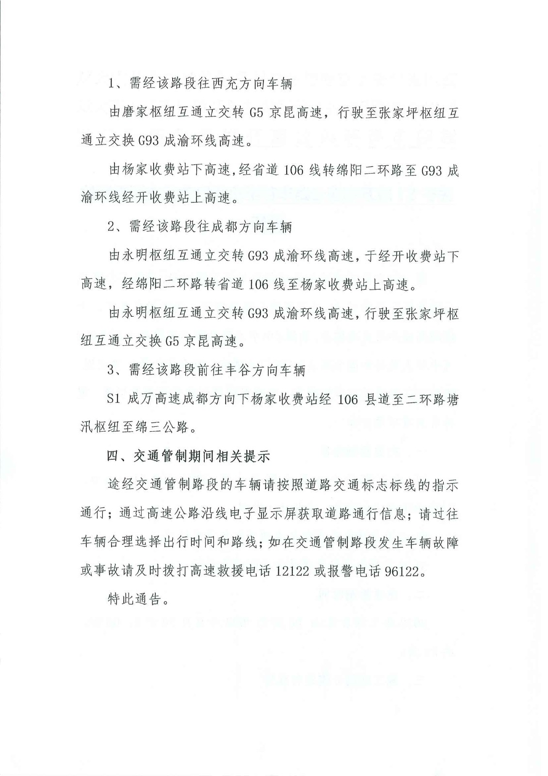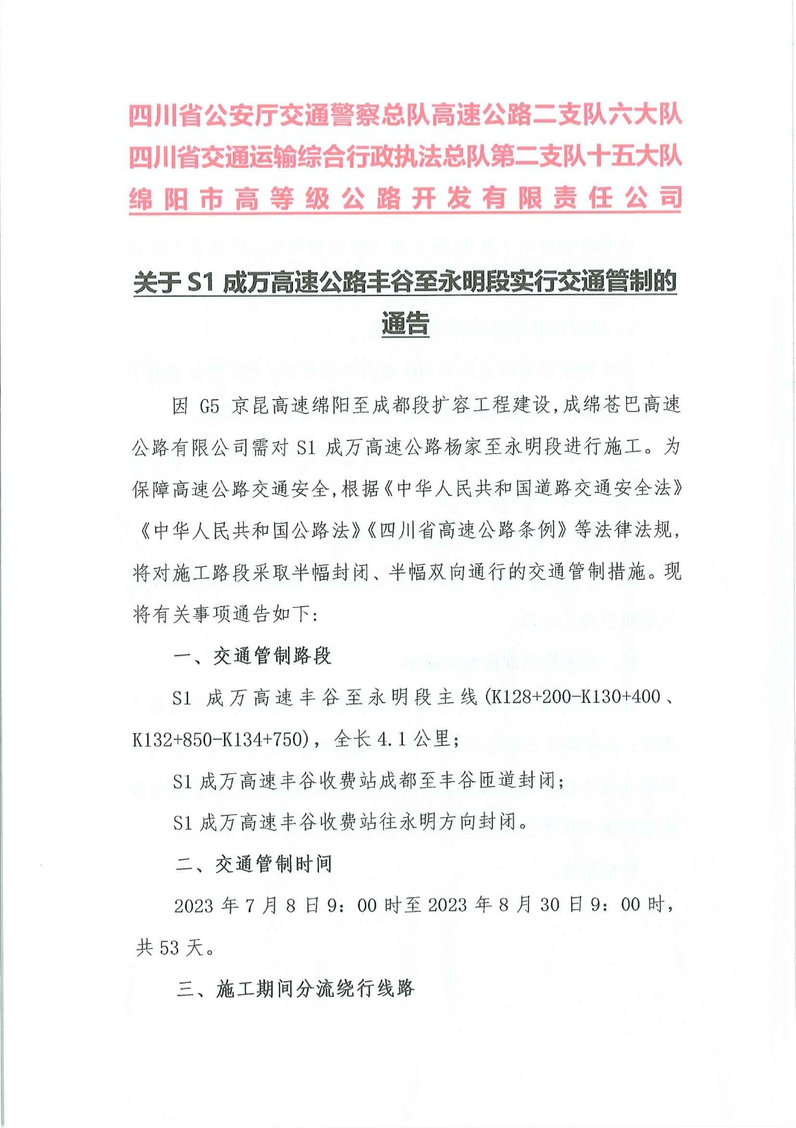 關(guān)于S1成萬高速公路豐谷至永明段實行交通管制的通告